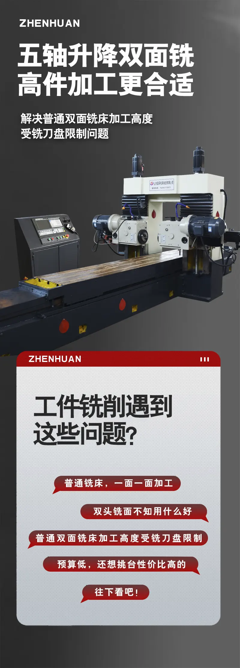 山东震环机床制造有限公司专注双头机床研发制造,主要产品有数控双面铣床,半自动双面铣床,五轴可长降双面铣床,龙门铣床,落地式端面铣床,双头车床,双头钻床等