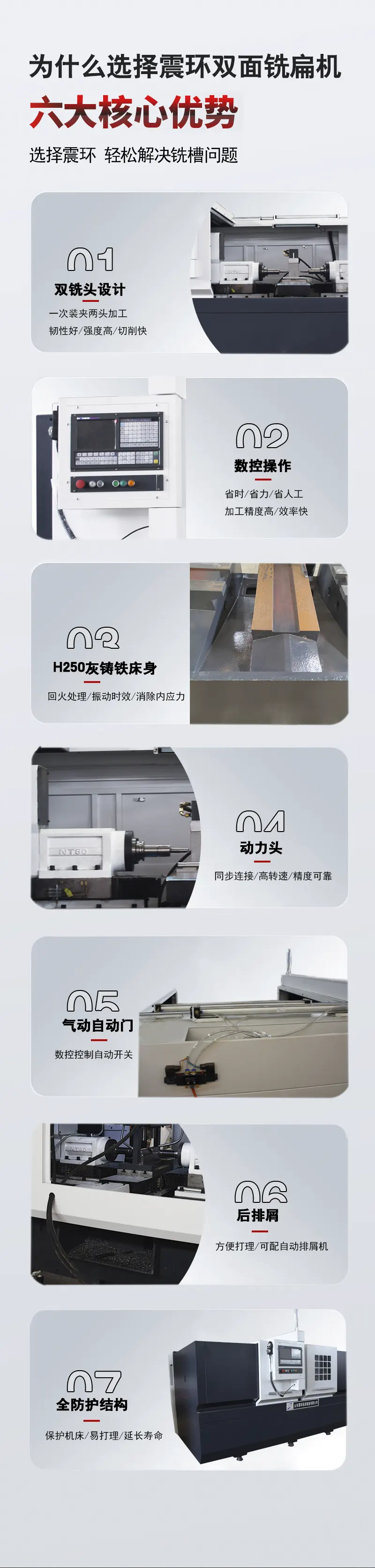 山东震环机床制造有限公司专注双头机床研发制造,主要产品有数控双面铣床,半自动双面铣床,五轴可长降双面铣床,龙门铣床,落地式端面铣床,双头车床,双头钻床等