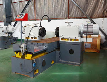 半自动双面铣采用铸铁250,导轨采用1V1平结构,直线度更好,通过高频淬火,导轨硬度到达48-52度经久耐磨,工作台宽500,长1.2米,工作台行程1.2米,左右滑台行程各300毫米,加接杆两机头最小可以铣到0 ,最大可以铣到600,左右动力头,采用手动进刀,(产品固定在工作台上,手动调节吃刀量大小,锁住滑板,防止切削中震动走位,导致尺寸不准)中间工作台是无极调速行走,可调节走速的快慢,吃刀量大,走慢一点吃,吃刀量小,走快一点,完成铣削工作。